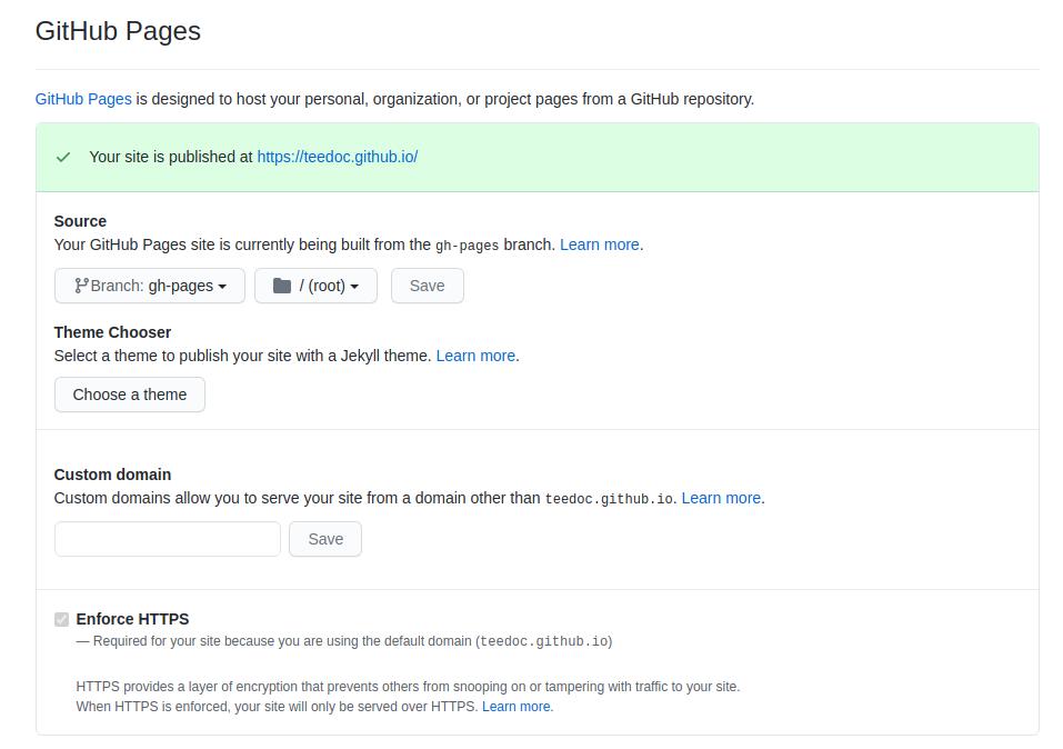 /,而且没有自定义域名(自定义域名见后面的介绍),比如https://teedoc.github.io/my_site/, 则需要在site_config.json中配置"site_root_url":"/my_site/"
